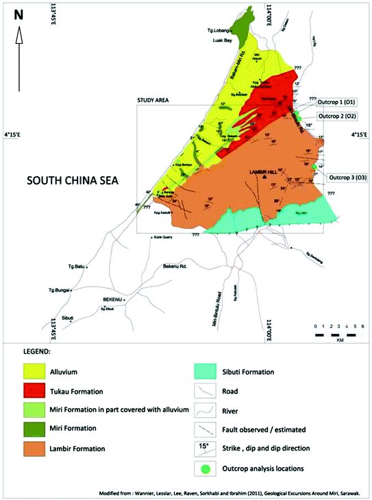 1964 Geological map of Sabah Brunei and part of Sarawak cartographic material comp. Geology of Sarawak Deepwater and its surroundings 1990. Geology map of the northern Sarawak showing the study area.